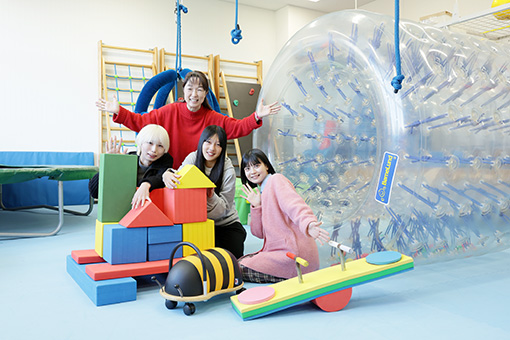 姫路市との「公私協力方式」によって開学し、総合大学として多様な取り組みを行っています。少人数制のきめ細かな指導により、高度な専門教育を展開。地域との活発な交流を生かした授業も多数開講しています。作業療法学科では、学内のプレイルームでボランティアスタッフとして、地域の子どもたちや特別な支援が必要な子どもたちと触れ合い、地域連携・支援を行うことで臨床力を養成しています。