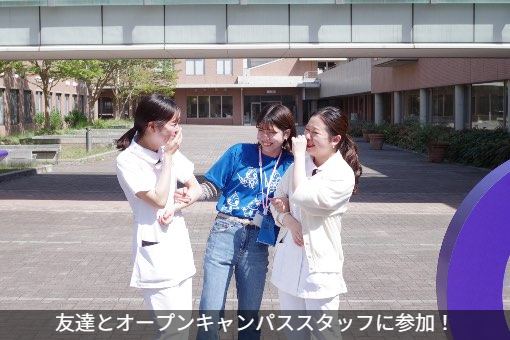 クラス担任制であることや、先生と学生の距離が近いことからすごくアットホームな大学です。また、看護は大変といったイメージがあるかもしれませんが、夢に向かって頑張っている人が多いので、お互いに励まし合いながら頑張れる環境なのがすごく良いところです。