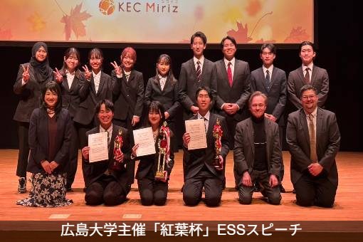 また、私は E.S.S.(English Speaking Society)に所属しています。もともと英語に興味があり、独学で学んでいましたが、顧問の先生から英語の面白さと奥深さを教えていただき、さらに探求したいと思うようになりました。2025年1月19日に開催された「第1回広島大学紅葉杯争奪英語弁論大会」では 第2位 を受賞しました。写真は受賞式の様子です。