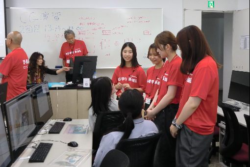建築学科の教員、学生とCG制作体験
