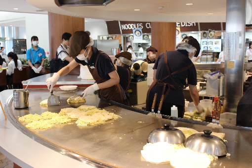大きな鉄板を備えたTEPPANコーナーがある学食も利用可能です。
