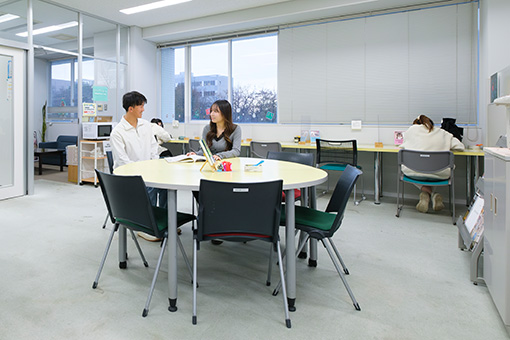 学生の皆さんがラウンジのようにくつろいだ雰囲気の中で学習できる部屋です。より充実したキャンパスライフを送れるよう様々な支援をし、図書館や自習室とは異なったリラックスできる学習環境を提供しています。