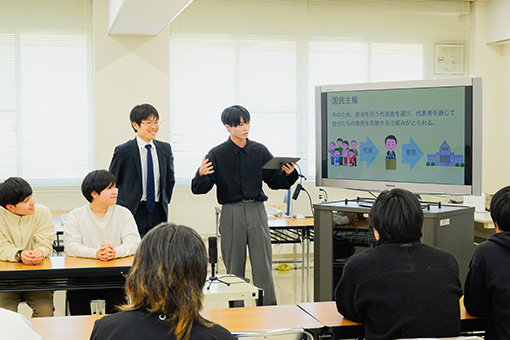 法律学、政治学、行政学、経済学、経営学などの分野に属する多彩な科目から進路に合わせて科目を選択できます。