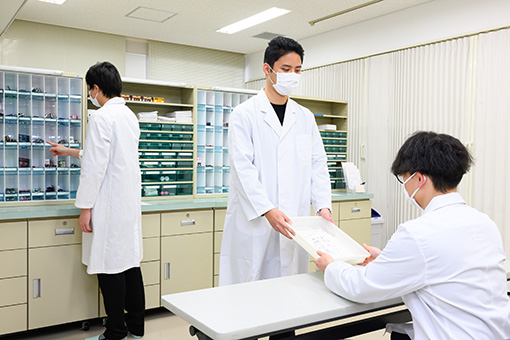 物理化学、薬品分析学、天然医薬品学、先端地域医療演習、医薬品研究開発概論、漢方・セルフケア概論、早期体験学習、薬局学、医療コミュニケーション学など