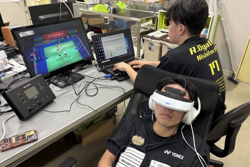 また、選手一人ひとりのスキルを伸ばすため、アイトラッカーを使った「視野探索」の弱点分析や、VRを活用した「モチベーション向上」のシステム開発にも取り組んでいます。現在、これらのシステムによるゲーム分析と実証実験を進めています。