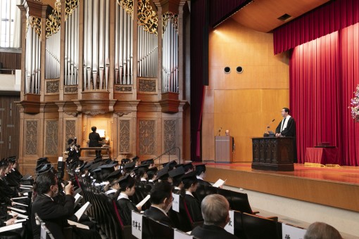 月曜から金曜までの1時限目と2時限目の間に行われる礼拝を行っています。また入学式や卒業式などの式典にも使用しており、キリスト教大学ならではの厳かな雰囲気を味わうことができます。