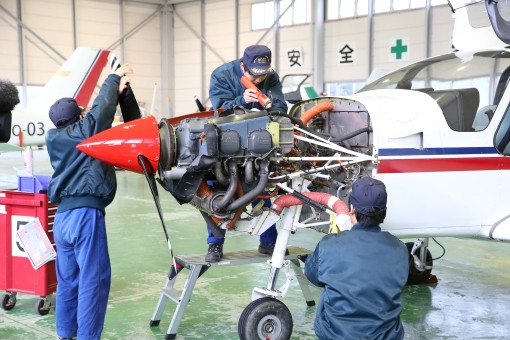 航空整備学専攻では、航空機の点検・整備を行うための専用施設が整備され、企業が求める実践力を養うカリキュラムを展開。国家試験の実地試験が免除される「航空従事者養成施設」として認定されており、プロの整備士をめざす学生にとって理想的な環境です。