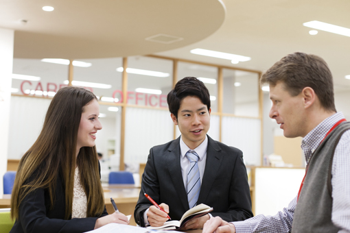 APUでは国際的な教育環境のもと、世界を見すえたキャリア教育を行っています。人材育成における多様な取り組みと実績が認められ、主要企業の人事トップが人材教育で注目している大学として、新聞やビジネス系の雑誌といったメディアに取り上げられています。こうした産業界からの高い評価と、多彩かつ独創的な就職支援プログラムに支えられ、就職実績は例年高水準を維持しています。この就職支援プログラムの1つとして挙げられるのが、「オンキャンパス・リクルーティング」です。業界を代表する企業や気鋭のベンチャーなど、APUの学生の採用に積極的な約200社がキャンパスを訪れ、説明会や面接などの採用活動を行います。このプログラムを通して例年多くの学生が内定を得ています。