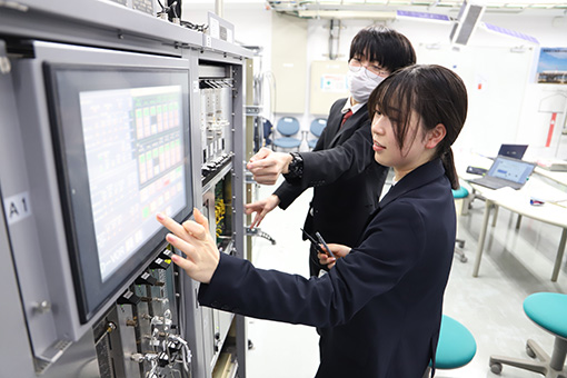 本校では、業務に必要な基礎知識と技能を習得するため、専門科目の座学だけでなく、実際に空港で運用されているシステムを模した装置やシミュレータを使用した実習も行います。