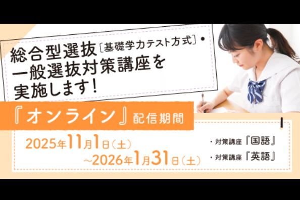 予備学校講師による、総合型選抜[基礎学力テスト方式]&一般選抜対策講座をオンライン配信します。