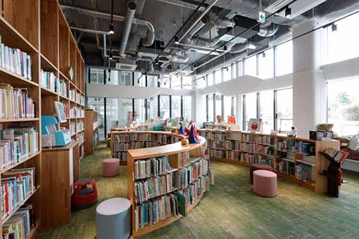 なんといっても、「えほんのもり」です。大人向けの図書室とは別に、絵本だけの図書室があります。その蔵書数はなんと1万冊以上!これは全国的に見ても大変珍しく、そのため「えほんのもり」は学生だけでなく、近隣の保育施設や親子の憩いの場にもなっています。子どもにとっても保育者にとっても、一番身近な児童文化財は、なんと言っても絵本です。身近に多くの絵本がある環境は、保育者としての感性をぐんと高めていきます。