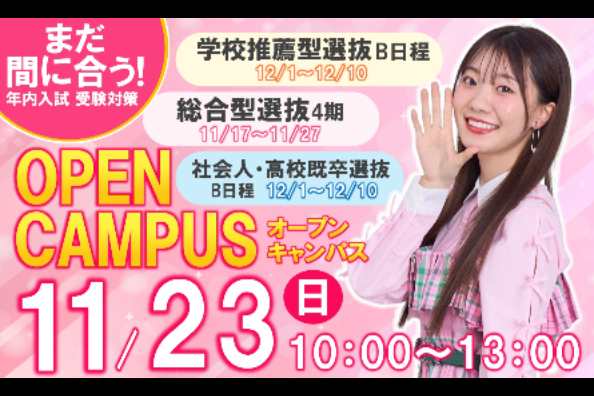 - 学校説明会、個別相談、在学生トーク、キャンパスツアー、面接対策講座ほか