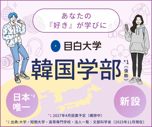 各学校の注目プログラムや最新トピックスなど、マナビジョンだけの充実したオリジナルコンテンツを掲載! 学校の魅力をチェックし、志望校検討に役立てよう。 条件で絞り込む 設置区分 #国公立大 #私立大 #短大 #専門学校 エリア #北海道・東北 #関東・甲信越 #北陸・東海 #近畿 #中国・四国 #九州・沖縄 東京都 | 私立大学 日本女子大学 経済を知るって、人間を知ることじゃないかな。 石川県 | 私立大学 北陸大学 メディア情報学科2027年4月開設予定 愛知県 | 私立大学 日本福祉大学 2027年4月、日本福祉大学に総合政策学部 総合政策学科誕生! 京都府 | 私立大学 京都女子大学 わたしは「食」でできている。2027年4月食科学部誕生 京都女子大学 兵庫県 | 私立大学 大手前大学 大手前大学 キミの「好き」も、ぜんぶ情報学につながってる。 東京都 | 私立大学 目白大学 あなたの『好き』が学びに 日本唯一!韓国学部新設 ※2027年4月設置予定(構想中) 愛知県 | 私立大学 愛知産業大学 生まれかわル! 愛知産業大学 愛知県 | 私立大学 中京大学 中京大学 工学部 新・情報工学科 2027年4月スタート! 大阪府 | 私立大学 大阪成蹊大学 2027年4月 大阪成蹊大学に経済学部、誕生。 埼玉県 | 私立大学 十文字学園女子大学 2027年4月、十文字学園女子大学は5学部9学科の新体制へ! 東京都 | 私立大学 青山学院大学 渋谷から、日本初統計データサイエンス 東京都/神奈川県 | 私立大学 東京都市大学 東京都市大学に誕生する、新しい学びの形。創発デザイン工学環(仮称)新設 広島県 | 私立大学 広島修道大学 はぐくむ、つなぐ、農学部 - 広島修道大学 愛知県 | 私立大学 名古屋外国語大学 変容する世界、進化する名古屋外大 東京都 | 私立大学 淑徳大学 私たちの社会は、いくつもの「誰かのために」という想いでつくられている 東京都/千葉県 | 私立大学 帝京平成大学 帝京平成流実学でデジタルと共に未来を創ろう! 東京都 | 私立大学 工学院大学 先輩はどうして理工系大学へ? - 工学院大学 東京都 | 私立大学 成城大学 「私らしく」学べる場所が、ここにある。 東京都/北海道/神奈川県/静岡県/熊本県 | 私立大学 東海大学 キミの学部選び、本当にそれで大丈夫? 愛知県 | 私立大学 名古屋外国語大学 自分に合う留学を見つけよう!目的別10人の留学体験記 愛知県 | 私立大学 日本福祉大学 2027年4月、新・東海キャンパス始動! - 日本福祉大学 愛知県 | 私立大学 名古屋学芸大学 専門職をめざすなら大学選択の決め手はプロ養成力 京都府 | 私立大学 京都先端科学大学 “超”成長実感 京都先端科学大学という選択 京都府 | 私立大学 同志社大学 先輩から学ぶ“今”すべき受験対策 大阪府 | 私立大学 関西外国語大学 「語学」のチカラが、君の「興味」を武器にする! 兵庫県 | 私立大学 関西学院大学 国公立大学をめざす高1・2・3生へ! 受験までのSmart Guide 兵庫県 | 私立大学 甲南大学 世界に飛び立つ先輩たちの未来 兵庫県 | 私立大学 甲南女子大学 たぶん、あなたが思っているのと違う甲南女子大学の学び