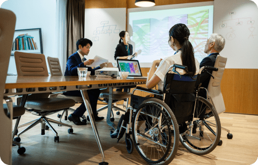 社会課題解決は一人ではできません。さまざまな関係者の思いをくみとり、行政・企業・地域と連携しながら、課題解決につながる商品・サービスや企画を開発します。