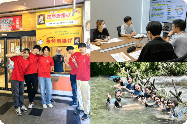 本プログラムは、総合政策学部の学際的な視点を生かし、地域や社会が抱える課題をビジネスの力で解決することを目的とした実践的教育プログラムです。環境、ジェンダー、地域活性化、メディアなど多様なテーマについて、フィールドワークや企業・行政・NPOとの協働を通じて、経済性と社会性の両立を重視しながら課題発見力・企画力・実践力を総合的に育成することを目指します。