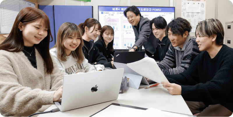 先進的な研究や実践を行う教員と共に、社会課題の原因を調査・分析し、それに基づいた課題解決策の社会実装に取り組みます。最終的には調査・分析や実践を踏まえた卒業論文を執筆します。