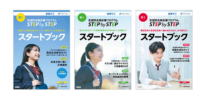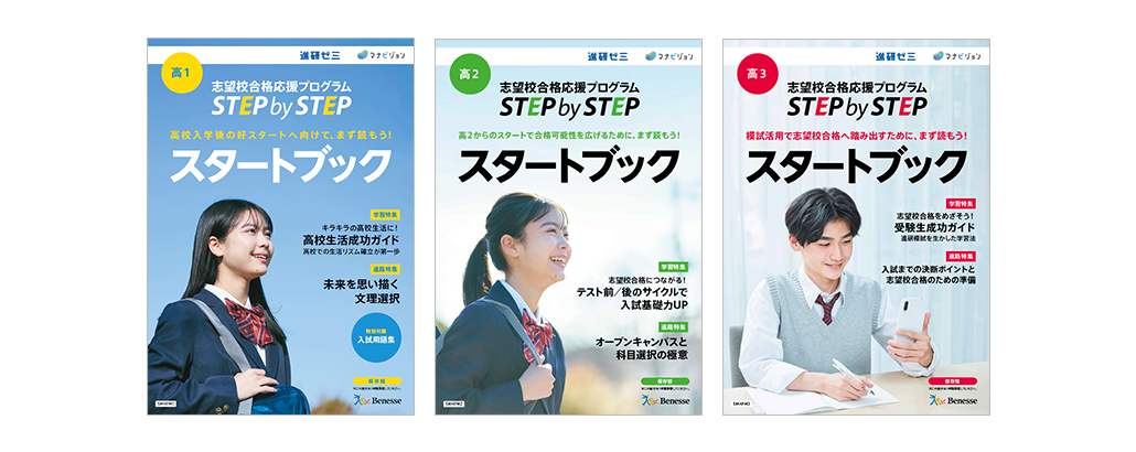 - ご登録いただいたご住所に、情報誌『志望校合格応援プログラム STEP by STEP』スタートブックをお届けいたします。